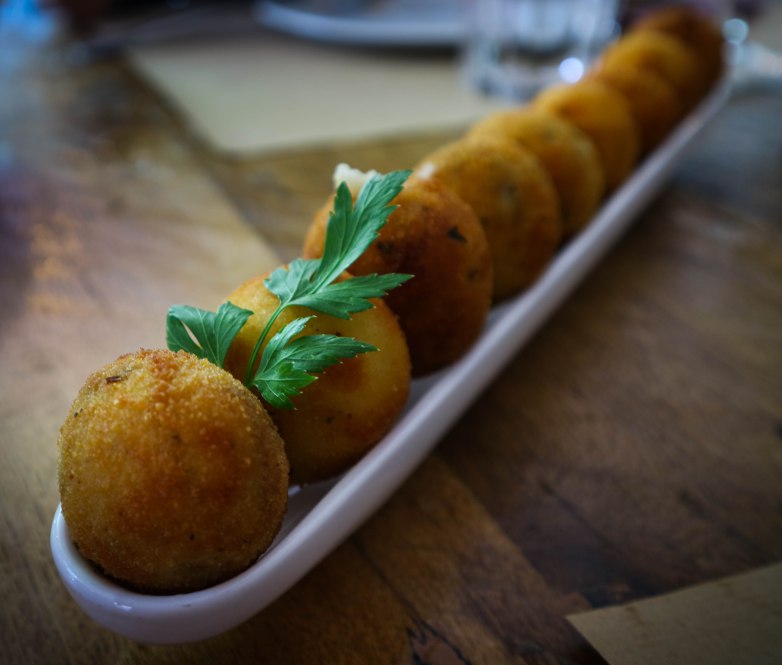 Las croquetas caseras. Esto es puntuar triple, con la cantidad de gañanes que nos las han vendido como caseras. En Escaramujo suelen tener variedad (sabor del día, algo lógico) estas eran de dos tipos: setas y ricotta.