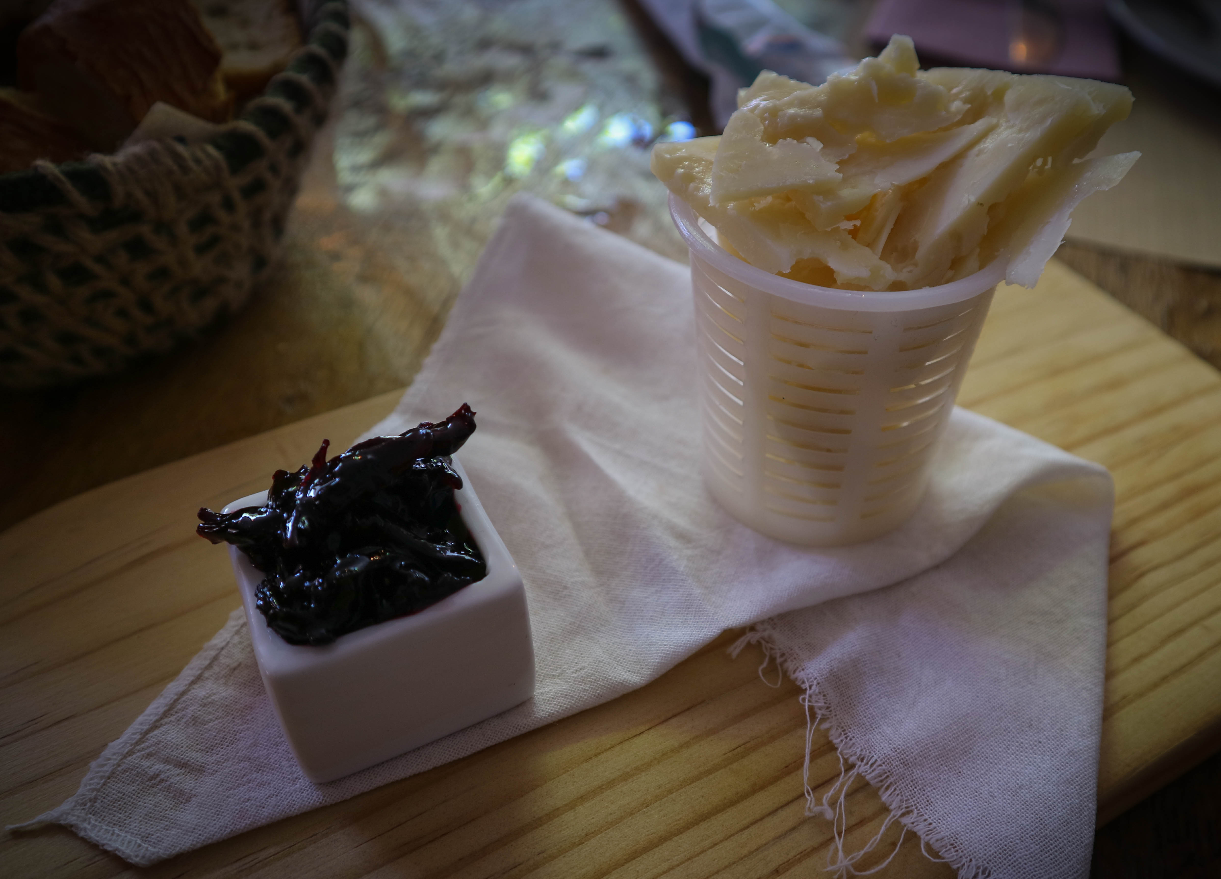 Y comienza el repertorio elegido en esta, nuestra primera visita. Queso de Los Cantarillos, muy curado, con Flores de hibisco confitadas: