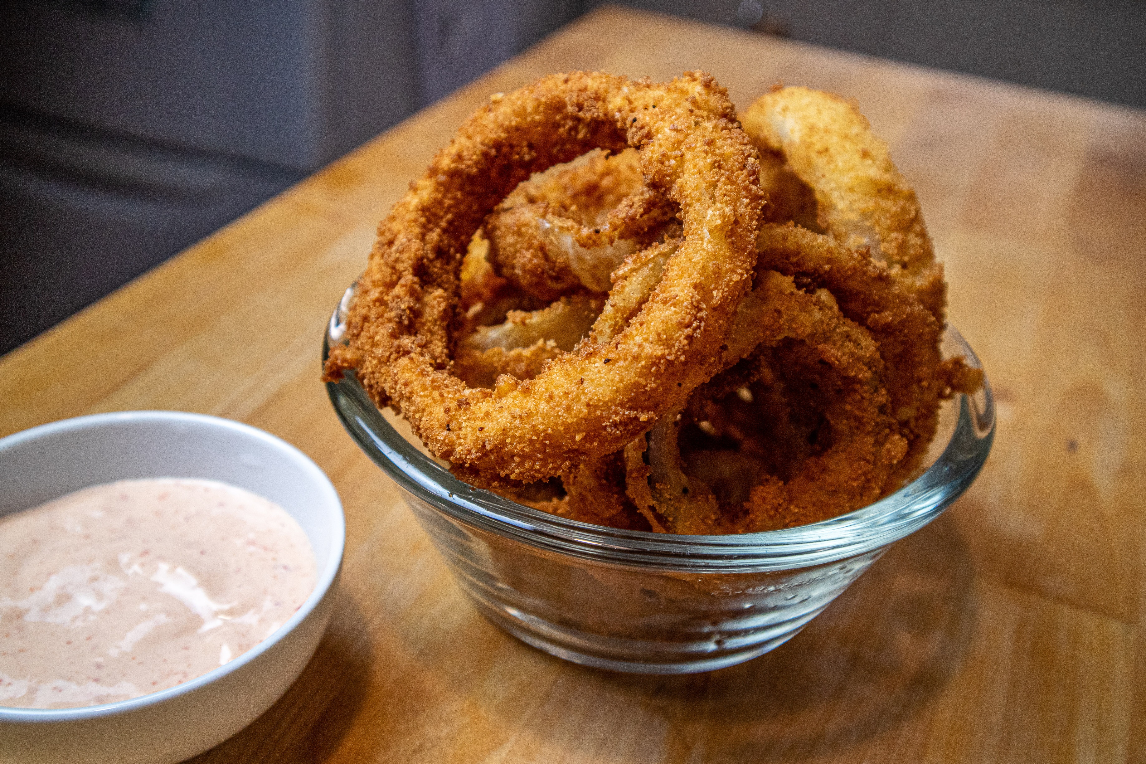 Todo esto se mezcla con unas barillas , cortas la cebolla separas los aros y los pasas por harina (opcional), luego por esta tempura , y por últimmo por pan rallado, y los fríes en aceite caliente.